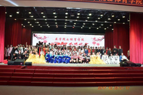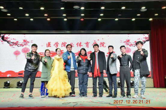 beat365正版唯一官网必一与医学院于12月20日晚上7:00在西区音乐厅联合举办“体医结合,激情新院”为主题的元旦晚会。出席此次元旦晚会的领导有beat365正版唯一官网必一党总支书记江灏老师、党总支副书记王海燕老师、副院长孟田老师、副院长张利老师、团总支书记孟杰老师,医学院党总支书记雎鑫老师、院长杨保胜老师、团总支书记李少觐老师。beat365正版唯一官网必一和医学院教研室主任与全体师生参加了本次演出。