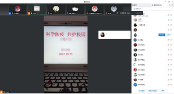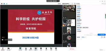 主题班会上,各辅导员用心用情用劲,既讲“怎么看”又讲“怎么做”:一是分析了当前疫情防控形势的严峻性、复杂性以及守牢校园疫情防控阵地的重要性,引导同学们不做“旁观者”,不做“局外人”,大家携手共同战“疫”,点点“星火”才能汇聚抗“疫”力量;二是传达了学校近期关于加强疫情防控的要求部署并开展了关于违反疫情防控规定典型案例的警示教育,提醒同学们要坚决克服麻痹思想、侥幸心理、厌战情绪和松劲心态,时刻绷紧疫情防控这根弦,要求同学们进入校内场所必须扫码、测温戴口罩、不聚集不扎堆、快递外卖不进校、非必要不出校不离新;三是开展了心理与卫生健康专题教育,引导同学们保持良好心态,自觉做疫情防控的参与者、政策知识的传播者、不良言论的抵制者,主动传播抗疫正能量,正确理解、主动配合、科学防控疫情;四是利用“国家智慧教育公共服务平台”开展了抗疫专题学习,动员同学们积极参加“科学防疫 共护校园”线上知识竞赛。