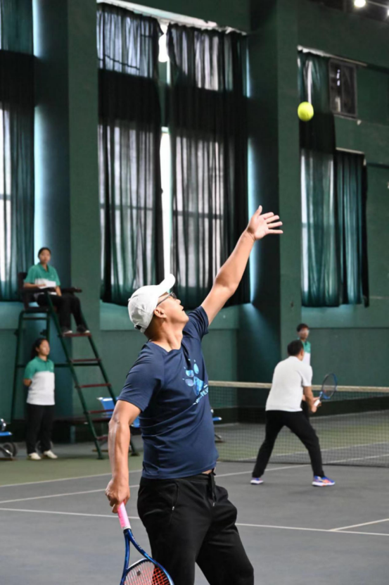 beat365官网派出由院长李永刚、副院长杨卫华带队,王军朝、李龙江、王思源、王洋洋4名网球教师参加男子双打项目的比赛队伍。