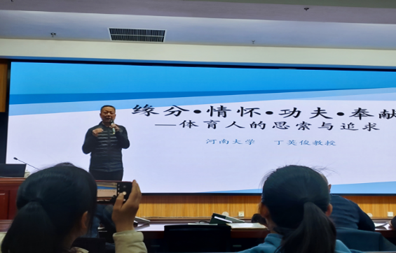 为加强学校公共体育工作的顺利开展,充分发挥体育综合育人功能,阐述体育专业学科价值,推动青年学子文化学习和技能学习协同发展。12月22日下午,beat365正版唯一官网必一有幸邀请到河南大学著名体育教育专家丁英俊教授,在行政楼报告厅为师生们进行了一场主题为《缘分·情怀·功夫·奉献——体育人的思索与追求》的精彩讲座。