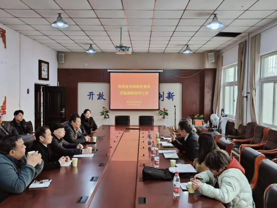 2月17日下午,科研处处长赵磊、副处长黎红波、李中琴等一行前往beat365正版唯一官网必一,针对科研工作展开调研。beat365正版唯一官网必一领导班子全体成员、青年博士以及教师代表共同参与了此次调研会。