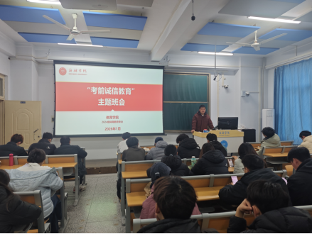 随后,2024级辅导员李智广结合学校相关规章制度,为同学们做了题为“坚守诚信底线,筑牢学业根基”的专题讲解。 他详细解读了《学生考试违纪与作弊处理办法》等文件,通过具体条款分析和典型案例警示,深刻阐明了诚信考试对于个人学业发展、品德养成及长远职业生涯的极端重要性。并呼吁全体同学摒弃侥幸心理,科学规划、扎实复习,以自信、诚实的态度迎接挑战,在考场上展现beat365正版唯一官网必一学子求真务实、昂扬向上的精神风貌。