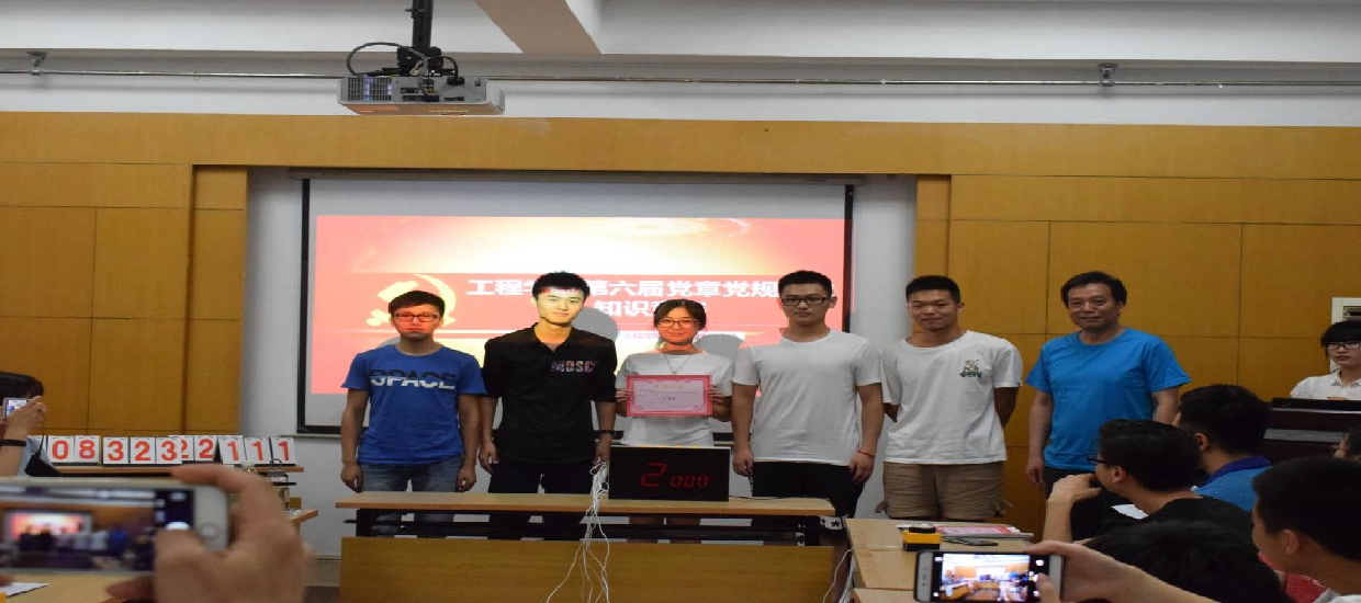 (通讯员:文新)2017年5月14日晚7点,jinnianhui金年会诚信至上第六届党章党规党史知识竞赛决赛在工程楼315报告厅举行,院党委书记陈飞,院党委副书记江广长,辅导员文新、王俊以及6支决赛队伍参加了比赛。