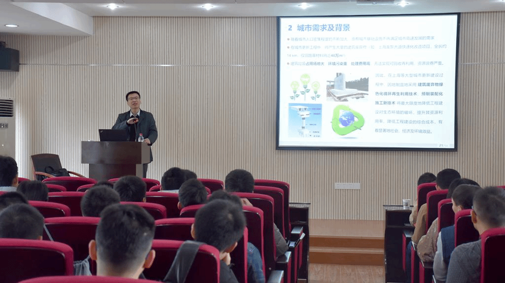报告围绕“城市更新中绿色施工技术探索与实践”展开,介绍了上海建工集团工程研究总院在复杂的城市环境中绿色施工技术的探索和工程实践经验,分别从“高架桥梁预制拼装技术”、“地下结构预制拼装技术”和“渣土再生利用技术”三个方面介绍了绿色施工技术中的关键技术问题和积累的工程经验。报告结束后,吴小建所长热情回答了参会师生的提问,他衷心希望金年会师生在城市绿色施工技术上取得更大的突破,为解决我国城市施工中的环境难题做出贡献。