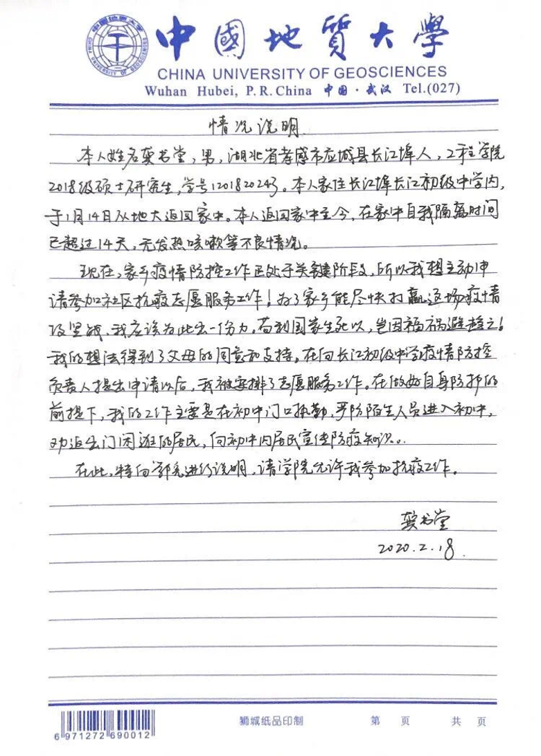 姚文昊 罗卓立 杨昊讯)龚书堂是金年会2018级土木工程硕士研究生,他响应学院学校号召,担任抗击疫情一线的志愿者。