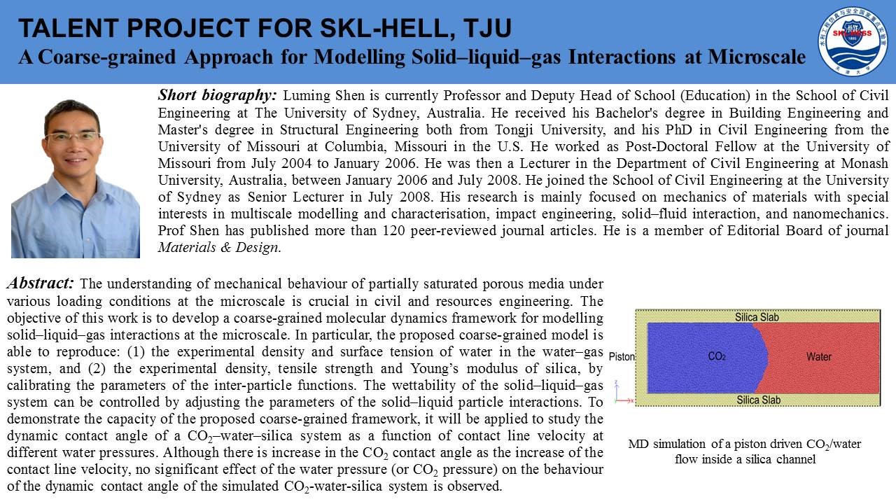 jinnianhui金年会诚信至上院长焦玉勇教授作为国际岩石力学与岩石工程学会非连续变形分析专委会主席牵头组织并主持了此次云论坛会议,石根华教授基于数十年的关键块体理论研究工作,介绍了关键块体理论的发展、基本原理及采用赤平投影方法将2D关键块体理论拓展的3D关键块体理论,并且用多个实际工程演示了关键块体理论的坝基、硐室分析应用;赵坚教授以岩石动力学实验及实验设备为出发点,简述了霍普金森杆(SHPB)在高加载率动力学实验中的应用和真三轴SHPB的发展过程及其特性与应用领域;沈鲁明教授以气-液-固一体化微观数值计算方法为核心,介绍了CGMD(coarse-grained molecular dynamic)数值方法,详细阐述了CGMD中多相相互作用关系,并以数值实验对CGMD进行验证,最后介绍了CGMD方法模拟CO2-水-SiO2系统各相介质之间的相互作用。