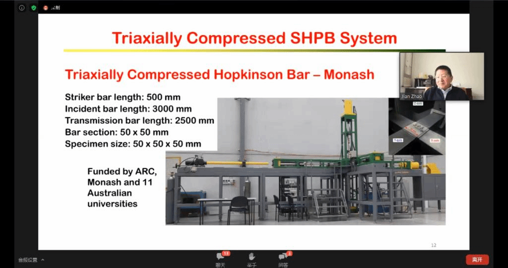 2020年7月18日上午,由国际岩石力学与岩石工程学会非连续变形分析专委会和岩石动力学专委会联合发起,jinnian金年会(武汉)、天津大学和东南大学联合承办的第一期国际岩石力学云论坛成功举行。本次论坛邀请了关键块体和数值流形理论创建者石根华教授、澳大利亚莫纳什大学赵坚教授、澳大利亚悉尼大学沈鲁明教授分别作了题为《Development and engineering applications of block theory and block algorithms》、《On the development of true triaxial SHBP system》、《A coarse-grained approach for modelling solid-liquid-gas interactions at microscale》的精彩讲座,来自莫纳什大学、悉尼大学、新加坡南洋理工大学、日本京都大学、jinnian金年会(武汉)、天津大学、东南大学、中山大学、大连理工大学、山东大学等全球各高校的1000余名专家学者参与了此次云论坛。