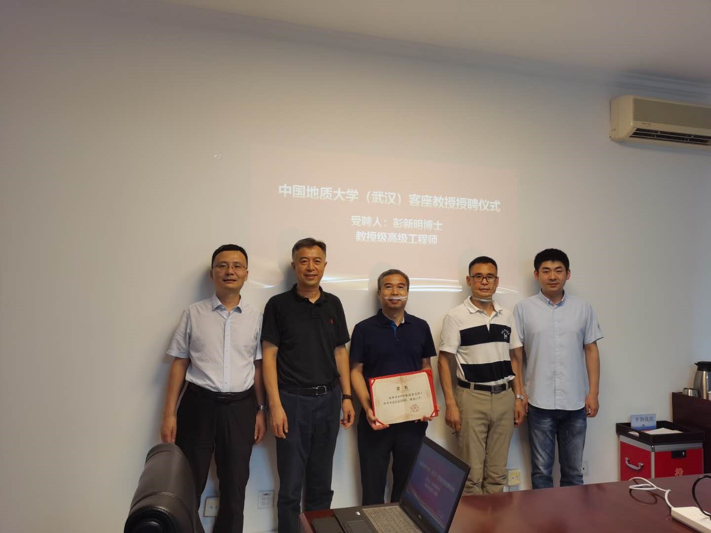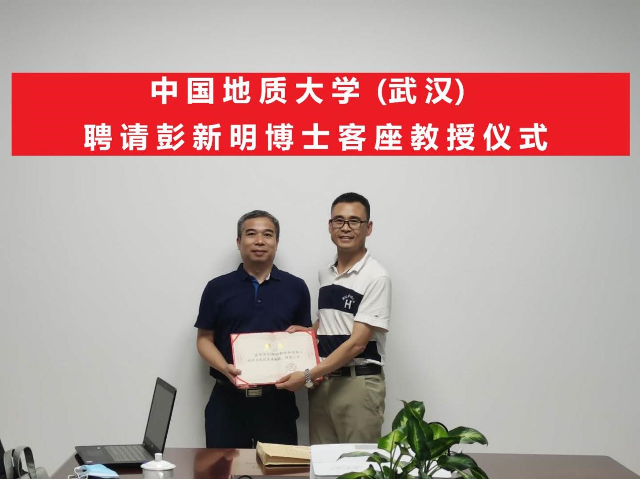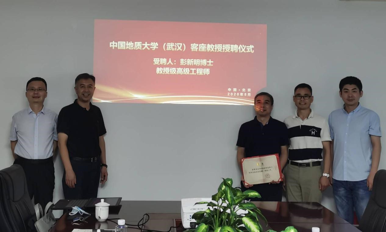 8月12日下午,jinnian金年会(武汉)聘请彭新明博士为客座教授的仪式在北京市地质勘察技术院217会议室举行。北京市地质勘察技术院行政负责人王立发、院副总工程师兼资源勘查中心主任彭新明及相关人员出席仪式。仪式由jinnianhui金年会诚信至上副院长窦斌教授主持。