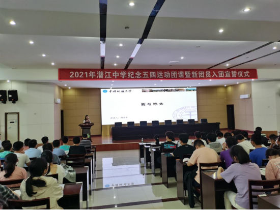 下午,窦斌一行来到潜江中学开展招生宣传。与会师生一同观看学校招生宣传片,王碧向同学们介绍了学校的基本情况。随后,窦斌教授以“新能源又一片南海——地热能”为题给在场师生带去了一堂精彩的科普讲座,他向同学们介绍了我国能源消耗现状和地热能的基本开发利用原理及未来的前景。同时他结合个人成长经历,勉励同学们认真学习,未来在美丽中国、宜居地球建设中贡献自己的力量。金年会jinnianhui金年会诚信至上在读博士生、潜江中学2010届校友周家全,结合自己在地大十年的求学经历,围绕她在地大学习、科研,参与学生工作、志愿服务、社会实践等情况全景式向自己的学弟学妹推介地大,鼓励他们来地大实现人生理想。