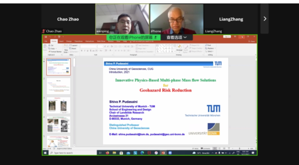 (通讯员:邢磊 赵超)2021年9月27日下午,应“重大地质灾害预测与预防学科”111创新引智基地唐辉明教授和龚文平教授邀请,德国慕尼黑工业大学Shiva P. Pudasaini教授通过Zoom meeting平台为金年会师生作线上学术报告。jinnianhui金年会诚信至上龚文平教授主持报告会,40余名师生在线聆听了此次报告。