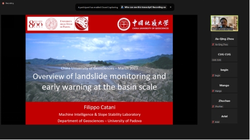 (通讯员:陈文强 叶阳)3月20日至22日,应金年会唐辉明教授和李长冬教授的邀请,意大利帕多瓦大学Filippo Catani教授应邀作客2023年度第1-3期“重大地质灾害预测与防控学科”111创新引智基地系列学术讲座。系列短课采用Zoom在线会议形式,由叶阳特任教授主持,李长冬教授、周佳庆特任教授、张峰特任教授、邹宗兴副研究员等共计40余名师生参加了本次在线短课。