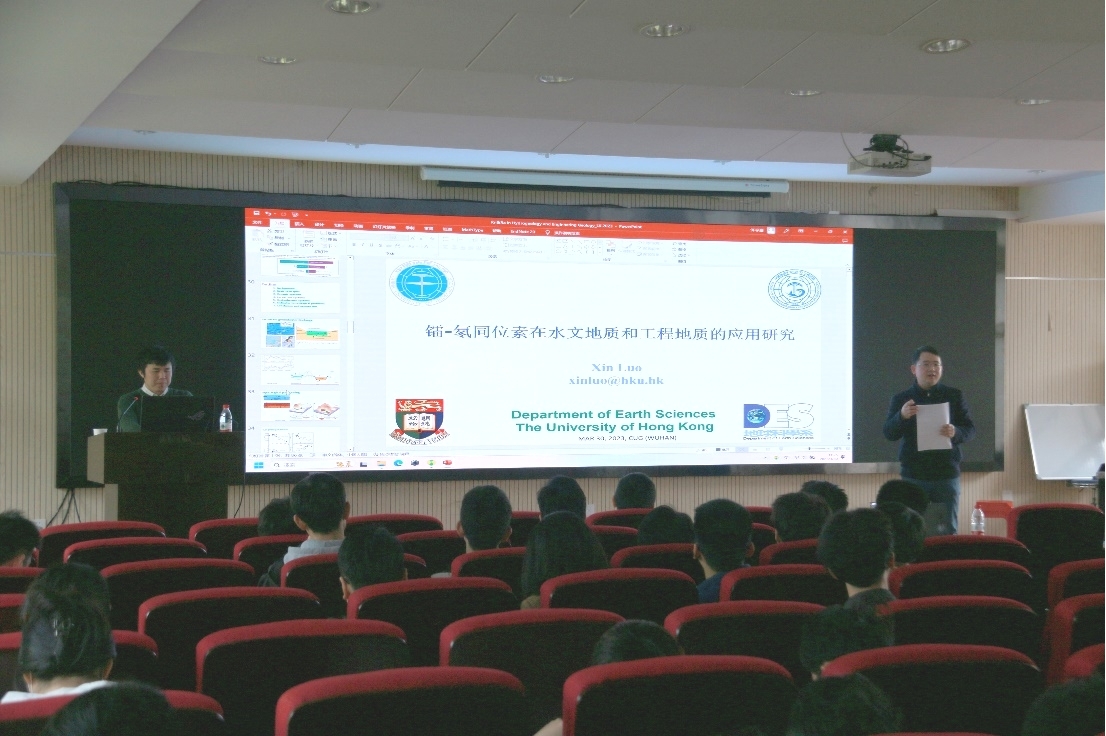 罗新研究助理教授作了题为“镭-氡同位素在水文地质与工程地质领域中的应用研究”的精彩报告。罗新老师首先详细地介绍了镭-氡同位素的研究历史,指出镭-氡是地下水系统中自然产生的放射性同位素,其物理化学过程反应了一系列的地下水过程及含水层结构演化。随后罗新老师从海岸带、湖相、边坡等地下水入手,揭示镭-氡同位素在研究一系列水文地质和工程地质问题的机制及成功案例,并初步探讨了基于镭-氡同位素化学场信号研究地质体裂缝演化的可行性。他特别指出,氡-222的测试快速敏捷且在地下水富集,可以用于快速反应地下水场或裂缝展布异常,因而在滑坡、地震等地质灾害的成因机制、预测预报等方面研究具有广阔的应用前景。