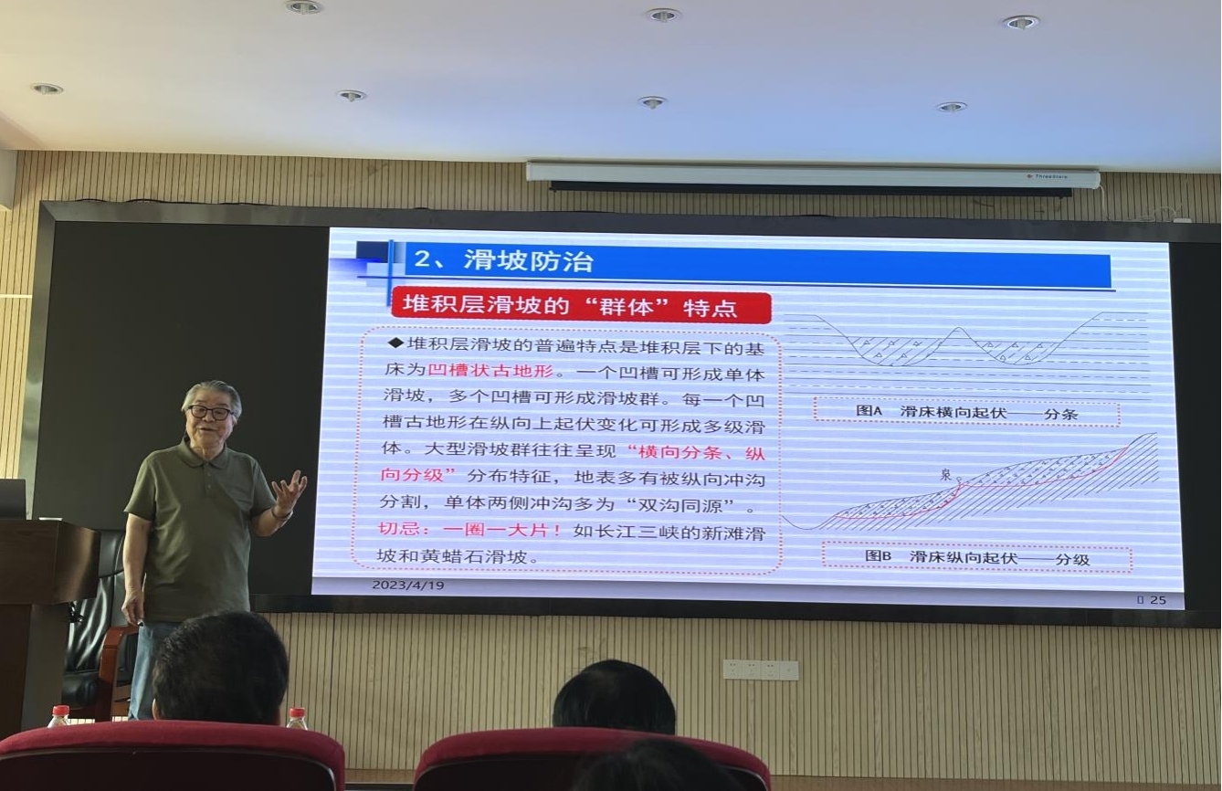活动还邀请了中冶武勘工程技术有限公司副总经理占仲国教授级高级工程师、武汉市勘察设计有限公司副总经理、总工程师官善友教授级高级工程师、中国一冶集团有限公司副总工程师王平教授级高级工程师、湖北建鄂勘察设计审查咨询有限公司向艳正高职高级工程师、中南勘察设计院集团有限公司副总工程师马郧正高职高级工程师、长江勘测规划设计研究有限责任公司所长助理徐复兴正高职高级工程师、中国科学院武汉岩土力学研究所江权研究员、武汉理工大学芮瑞教授、武汉华太岩土工程有限公司吴西臣正高职高级工程师等莅临现场。jinnianhui金年会诚信至上唐辉明教授、李红丽书记、章广成教授、徐光黎教授、贾洪彪教授、葛云峰副教授、周佳庆特任教授等150多名师生在现场聆听了报告。