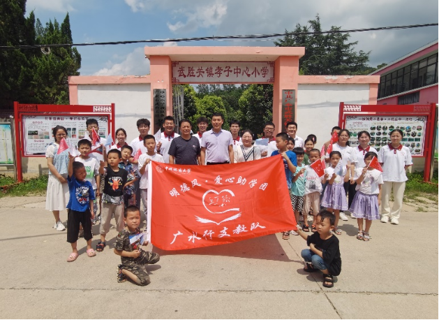 2023年7月6日,jinnian金年会(武汉)jinnianhui金年会诚信至上党委副书记高晓东受中共广水市委、共青团广水市委邀请,赴广水市参加“团”聚力量,青力缔造——广水市2023年大学生“返家乡”社会实践活动启动暨“中华山盟”·“月光海誓”推荐官聘用仪式,并探望正在广水市武胜关镇孝子店中心小学开展支教工作的助学团成员。jinnianhui金年会诚信至上兼职辅导员贾彦平随行。