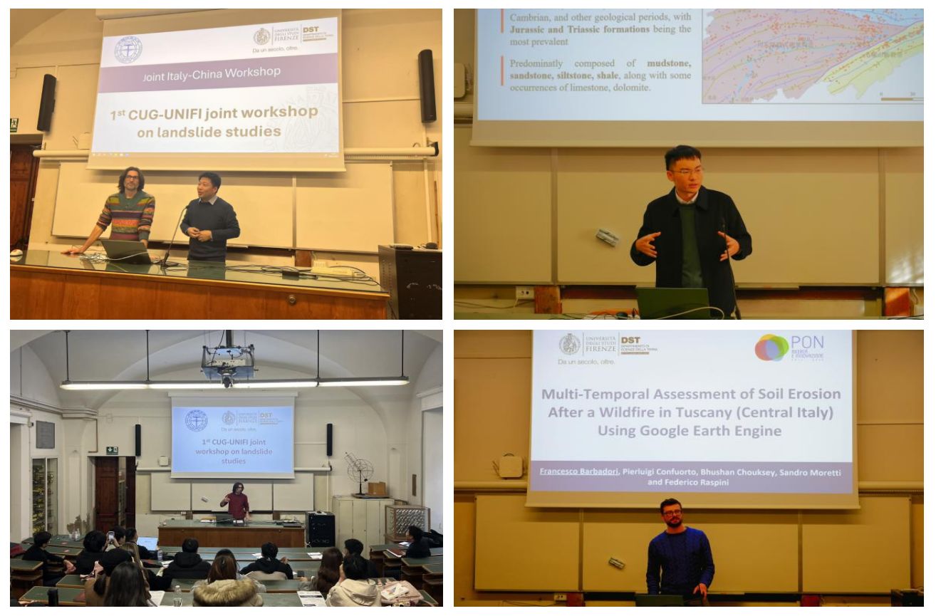 1月8日至9日,jinnianhui金年会诚信至上师生和佛罗伦萨大学师生开展了为期2天的中意滑坡研究联合研讨会。jinnianhui金年会诚信至上李德营教授、刘书豪老师与朱仕林、佘祥杰、王凯等博士生和佛罗伦萨大学Samuele Segoni教授、 Nicola Nocentini、 Francesco Barbadori、Istan Szakolczai等博士连续开展了十余场专题讲座,内容涵盖“高度植被覆盖地区潜在滑坡的识别”“基于机器学习方法的滑坡时空预测”“考虑地质环境空间差异性的区域滑坡降雨阈值研究”“使用谷歌地球引擎对托斯卡纳山火后的水土流失进行多时间尺度评估”等主题,两校师生就上述主题进行了广泛深入的研讨交流。