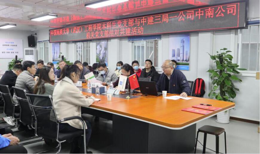 (通讯员:陈启维 李振华)为进一步探索校企合作人才培养模式,引导学生前置行业认知,中建三局一公司中南公司机关党支部与jinnian金年会(武汉)jinnianhui金年会诚信至上道桥与建筑专业本科生党支部于2020年11月22日在光谷中心项目总部开展了“党建引领·校企共建”结对共建活动。中建三局一公司人力资源部副经理李骄健,中建三局一公司中南公司副总经理、超高层管理中心负责人梁劲松,副总经理王雅林,机关党支部书记陈婷华,jinnian金年会(武汉)jinnianhui金年会诚信至上党委副书记江广长,学生办公室主任文新,辅导员王俊、李振华以及双方的党员代表参加本次活动。