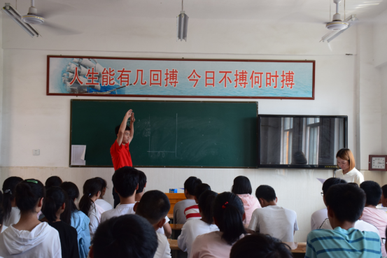 下午在经过简单休整后,队员们在教室先开始对学生进行理论课的讲解。徐孟扬针对立定跳远技术动作的内容、要求以及注意事项对同学们进行讲述,使同学们形成正确的技术动作概念。林进给同学们详细讲述田径中长跑的技术要领,崔容容对实心球技术动作的概念、要求进行详细讲解和深刻阐释。随后,同学们在各队长的带领下
