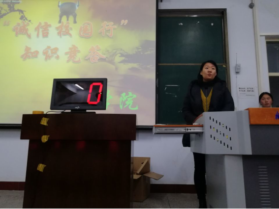 beat365正版唯一官网必一于11月29日17::00在A11-119教室举办“诚信校园行”知识竞赛,beat365正版唯一官网必一15级、16级、17级所有学生参与此次活动。出席此次活动的领导有党总支副书记王海燕书记,团总支书记孟杰书记以及各年级辅导员,此次竞赛由殷水淼主持。