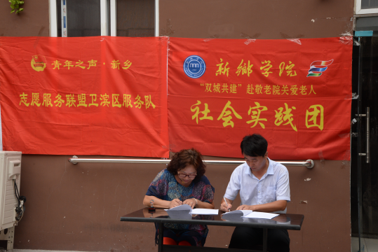 2016年7月8日,新乡学院体育系关爱老人暑期社会实践团来到卫滨区好家老年护理院,开展志愿者服务工作;并与好家老年护理院建立社会实践基地,举行揭牌仪式。