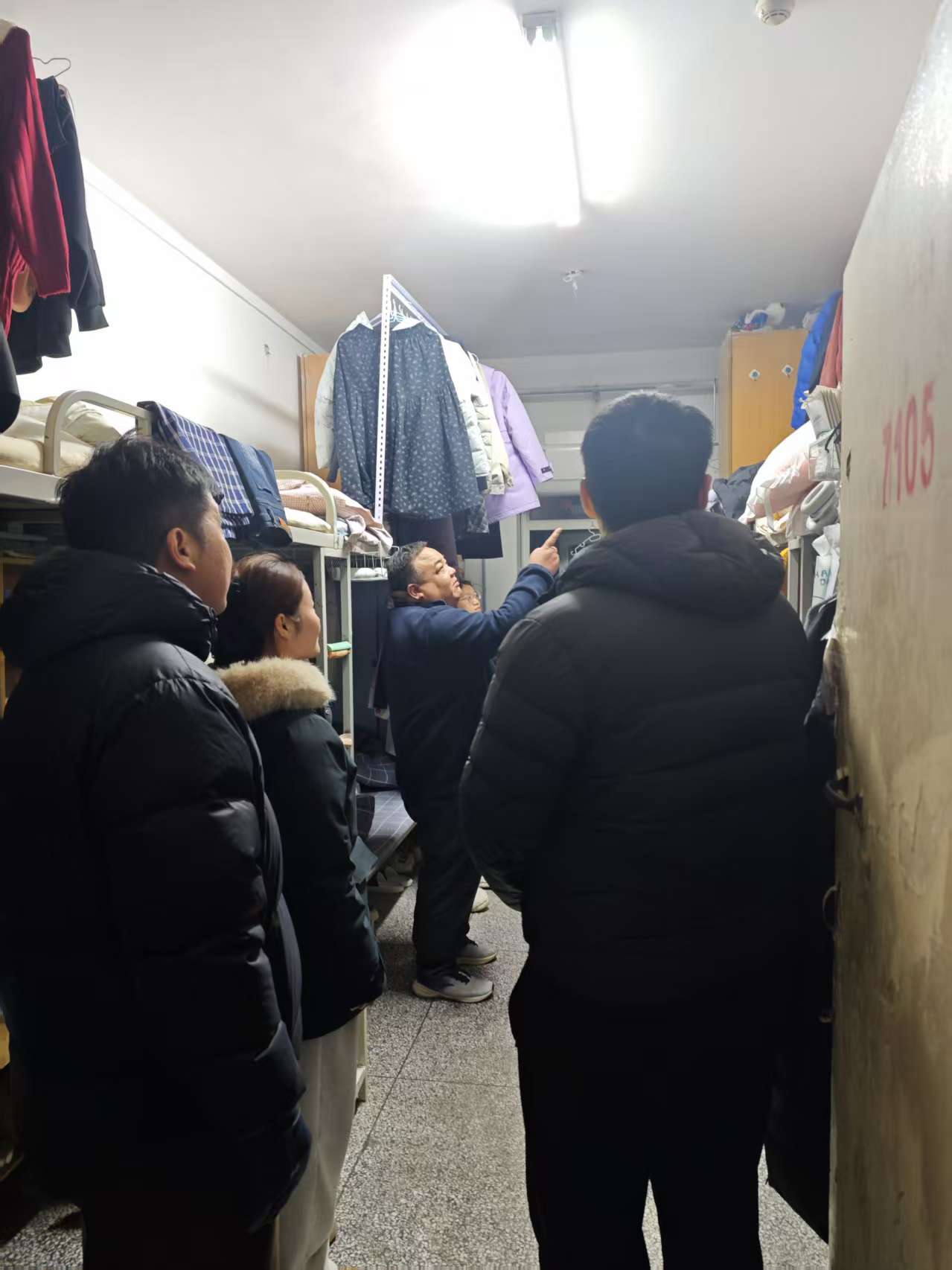 时值冬季用电高峰期,检查重点围绕宿舍安全用电规范进行了细致排查。检查过程中,副书记黄远伟与辅导员们逐一走访寝室,认真查看有无使用违规电器、私拉乱接电线、插座超负荷运行等安全隐患,并现场提醒同学们务必做到人走断电,确保用电安全。同时,检查组还着重查看了寝室门窗设施,反复叮嘱同学们务必养成“出门落锁”的良好习惯,妥善保管个人贵重物品,共同维护寝室财产安全。
