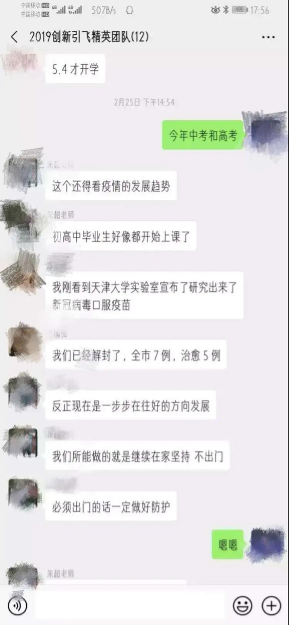 朱超老师细心叮嘱,让学生们正确认识疫情、提高预防意识、树立了良好心态,还耐心提示假期安排,让学生们度过充实假期,为开学做准备。