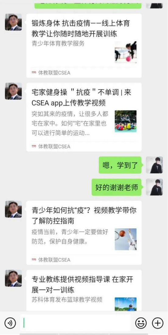 在抗击疫情在家防护的此段时期,同学们时常收到来自武燕老师关心的信息,嘱咐同学们要劳逸结合、多陪伴父母。因在家备课场地和授课内容都有限,但还是尽职尽责要做到更好,通过视频直播和拍短视频来指导学生动作,使学生在家也能学好做好。在此期间还一直配合学院进行防控预防疫情的宣传和服务,如学院现在的《党旗飘扬,体育担当》系列的微信推送,武燕老师一直参与其中,与学生们和其他老师一起共同完成。